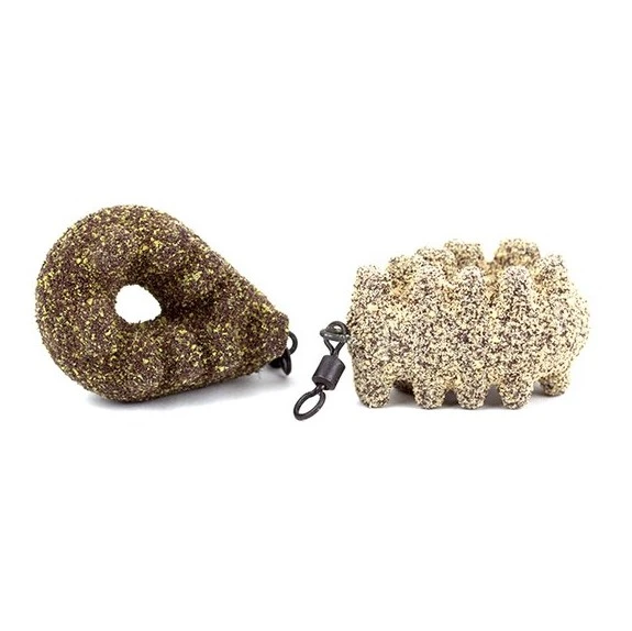 In het centrale gat en rond het lood kan je eventueel deeg of lookaas kneden om de attractie rond je haakaas te vergroten.